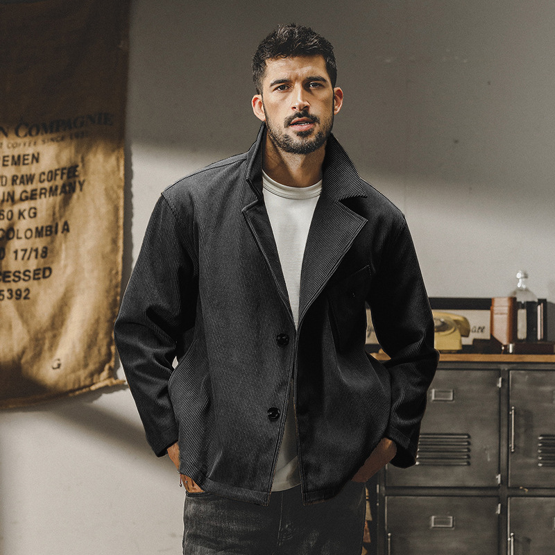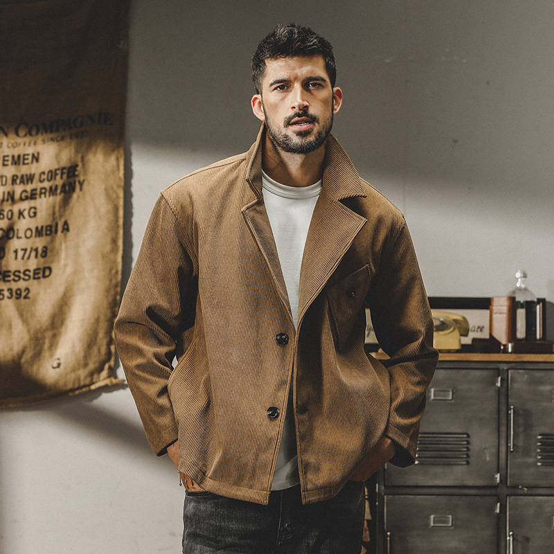 Элегантное изделие сочетает классические линии и комфорт современного покроя. Вельветовая ткань приятна к телу, придает образу благородство и статусность. Пиджак идеально подходит как для повседневных образов, так и для деловых встреч. Удобная молния внутри позволяет легко надевать его поверх одежды, сохраняя безупречный внешний вид. Повседневный пиджак из вельвета от бренда Jereno в американском стиле ретро, мужской весенне-осенний модны
