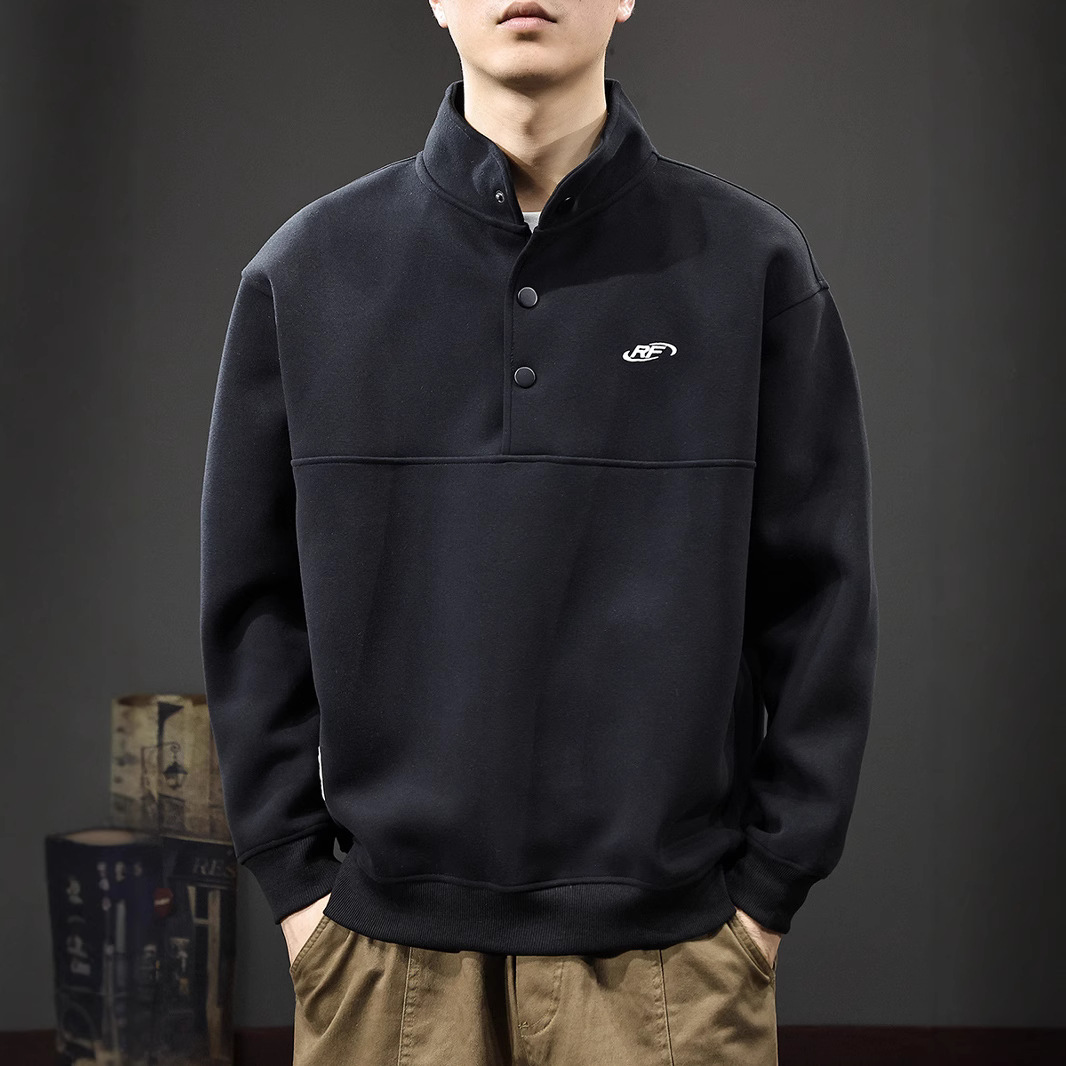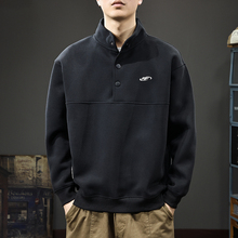 Толстовка с полуоткрытым воротником-стойка на трёх пуговицах,осенняя мужская американская модная брендовая вышивка, свободный стильИзготовлена из высококачественного хлопкового трикотажа, обеспечивающего комфорт и свободу движений. Идеально подходит для ежедневной носки и прогулок. Премиальное качество материалов и пошива подчеркивают статус владельца. Уникальный дизайн и детализация выделяют изделие среди аналогов — отличный выбор для ценителей настоящей американской моды.