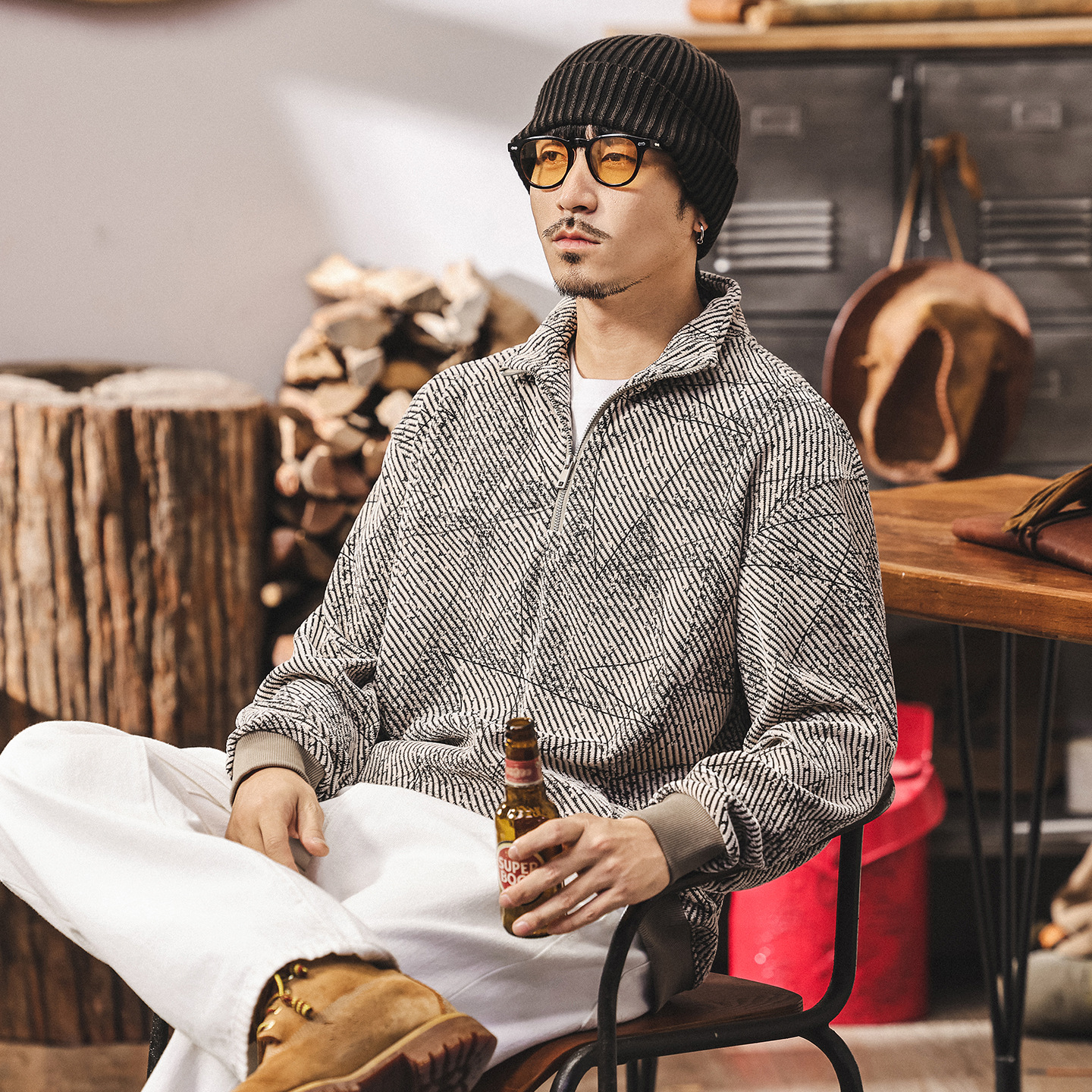 Представляем мужской свитшот в американском ретро стиле из новой коллекции весна-осень . Изготовлен из плотной пряжи весом 330 г/м², что обеспечивает комфортную носку в прохладное время года. Жаккардовое плетение добавляет изделию изысканности и подчеркивает современный дизайн. Половинная молния удобна при надевании и создает оригинальный внешний вид. Свобода кроя позволяет чувствовать себя свободно и комфортно в любой ситуации.