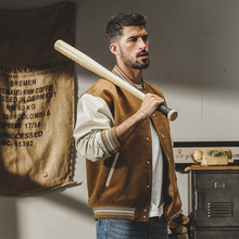 Мужской американский ретро стиль, весенне-осенняя куртка бейсбольная куртка. Отлично дополнит образ делового мужчины благодаря стильному дизайну и качественной ткани. Особенности модели: • воротник стойка • Внутренний карман на молнии; • Двойная подкладка обеспечивает комфорт при носке; • Эластичный рукав и низ изделия; • Удобные карманы для повседневных вещей. Материал: 80% полиэстер, 20% полиамид.Комбинированная замшевая бейсбольная куртка цвета куркума.