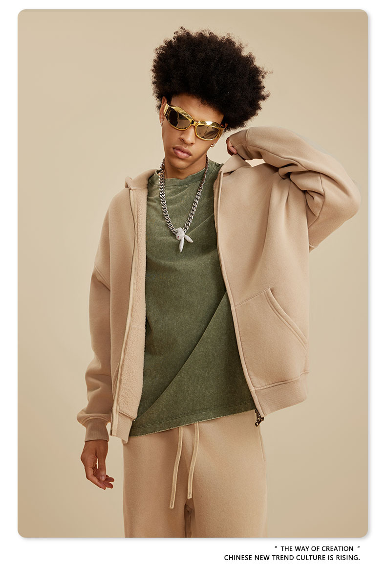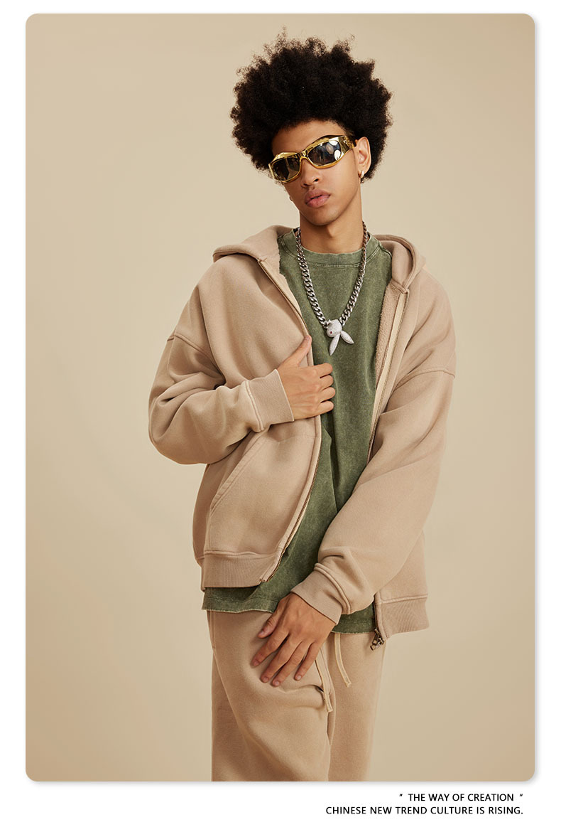 Американский модный брендовый костюм мужской зелёного цвета с эффектом потёртости с капюшоном и двойной молнией для мужчин. Погрузитесь в мир истинного комфорта и стильной классики! Американская брендовый костюм с эфектом потёртости – это больше чем элемент одежды, это ваш личный штрих современной моды. Двойная молния придает ей особый шарм и удобство, а мягкий бархат ласково согреет даже в самые прохладные дни. Ретровый дизайн гармонично впишется как в повседневность, так и станет акцентом вашего особенного образа. Подчеркните индивидуальность вместе с нами!