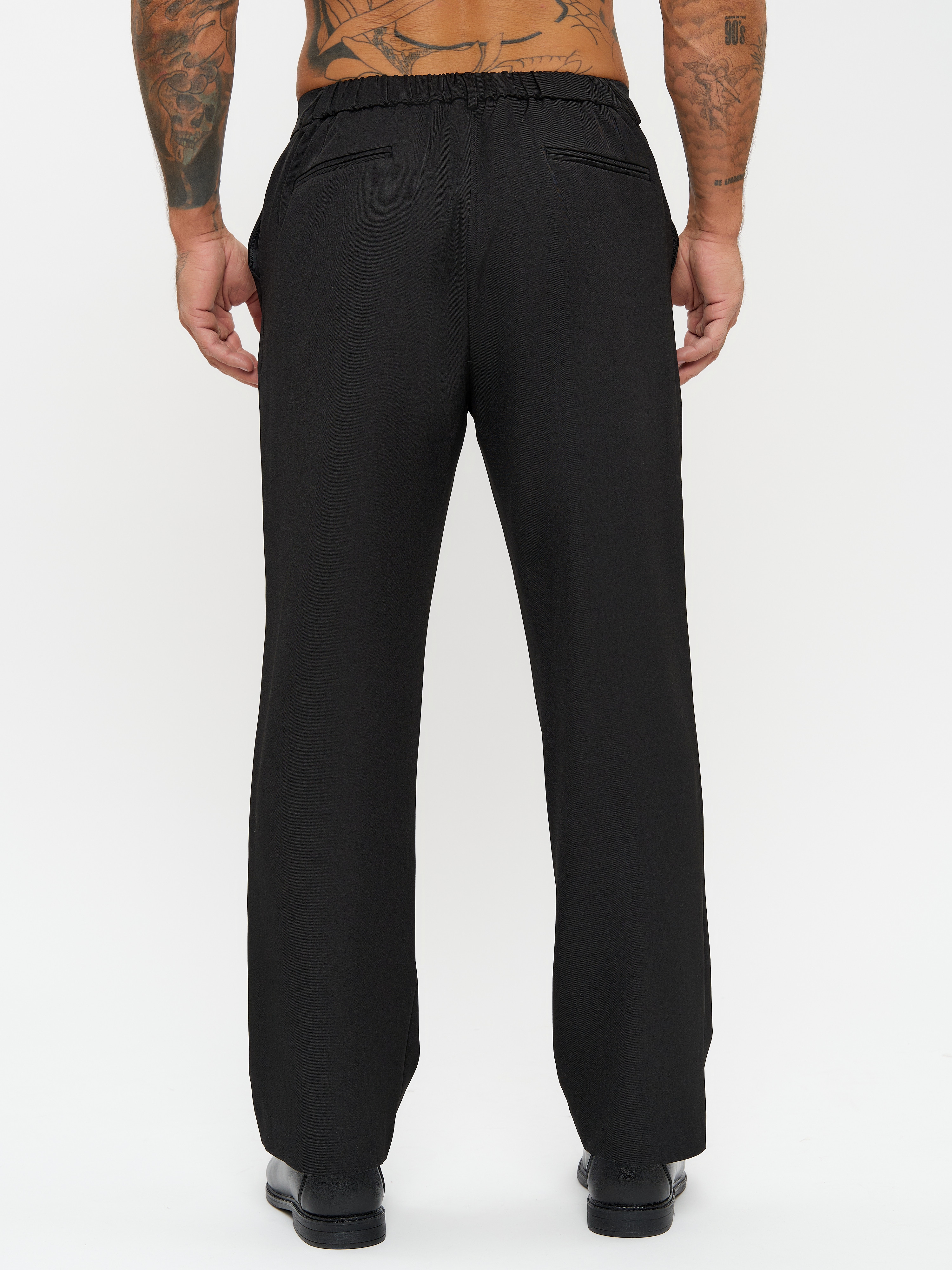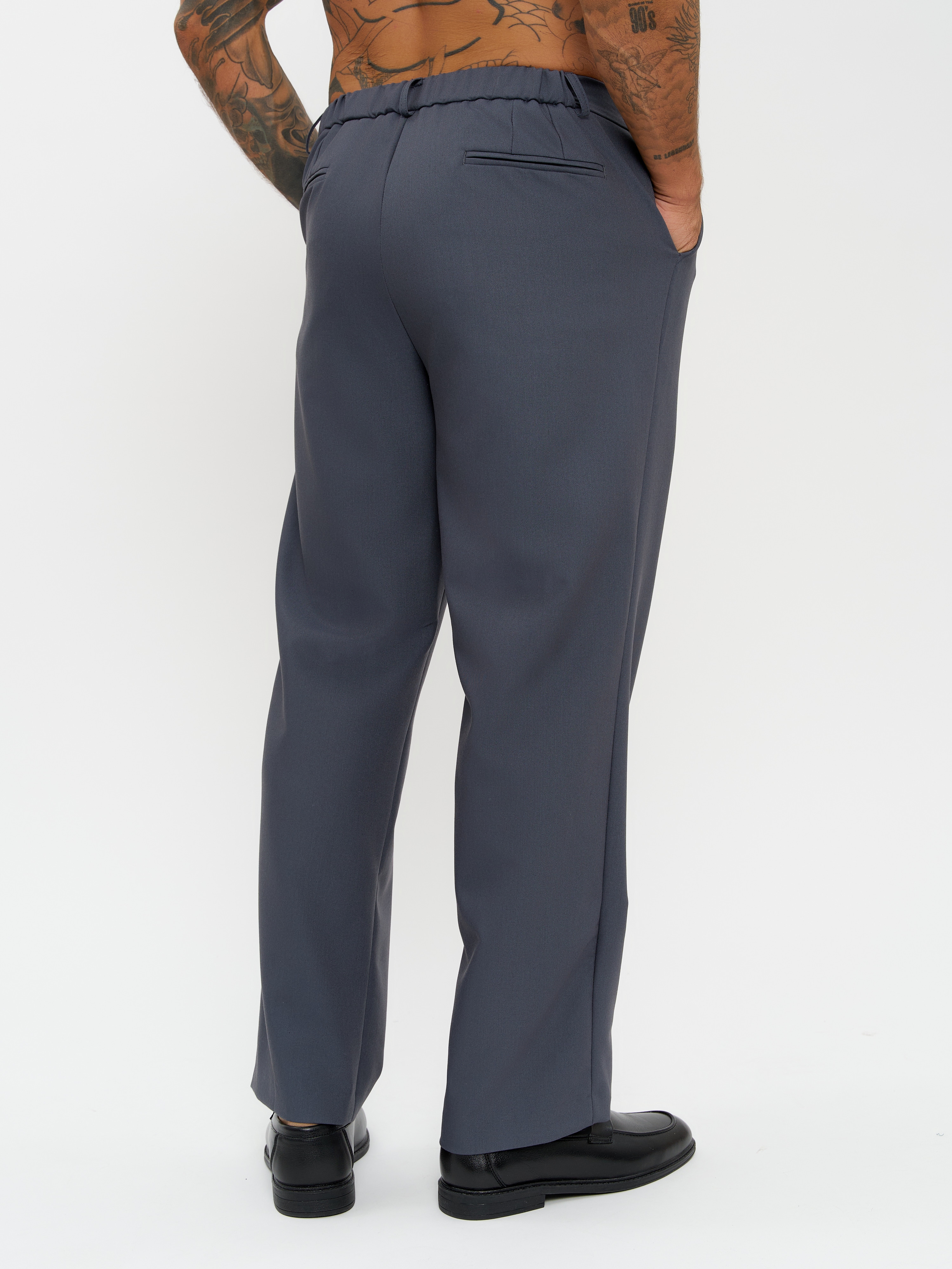 Обратите внимание на длину брюк. Модель Алекс рост 182 размер 50. Параметры 110-80-100. Ткань стрейчевая. Широкие брюки с высокой посадкой с резинкой на половину пояса