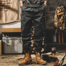 Брюки карго мужские в американском стиле в стиле ретро, весенне-осенние свободные прямые повседневные брюки с большими карманами