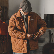 Gaomi Gaomi Мужская стеганая двойной строчкой осенняя куртка на хлопковой подкладке. Отличается высоким качеством материалов и безупречным кроем. Удобна в носке благодаря продуманной конструкции и мягкой внутренней подкладке из хлопка. Дизайн модели сочетает классические линии с современными элементами, делая её универсальным выбором для ежедневного использования. Стеганая двойная строчка придает дополнительную прочность и акцентирует модные акценты. Куртка легко комбинируется с базовыми предметами гардероба, создавая стильные образы осенью и в прохладное время года.