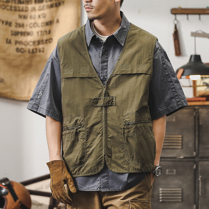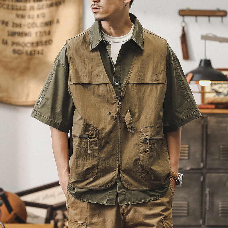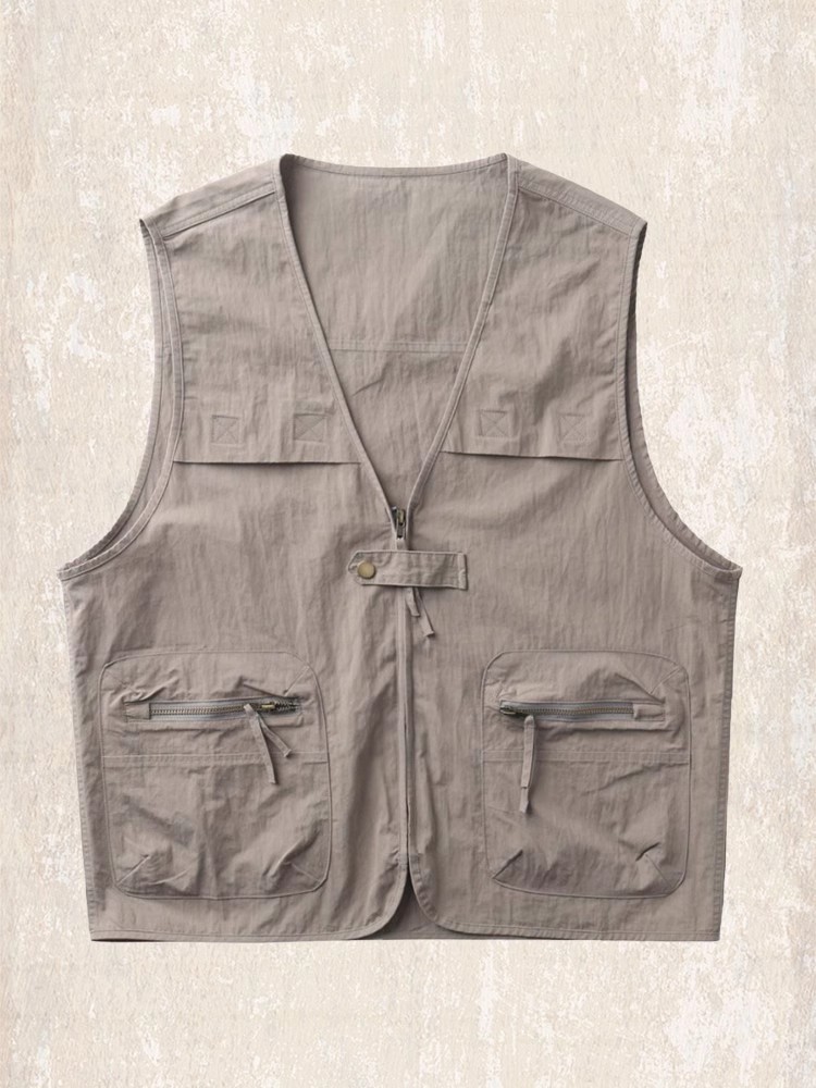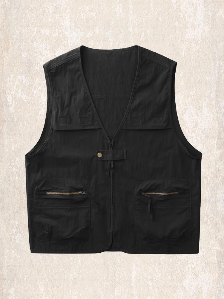 Мужской жилет летнего сезона от JIELEINUO. Модель выполнена в профессиональном стиле, оснащена молнией-замком и дополнена накладными карманами. Ткань изделия тонкая, обеспечивает комфорт в жаркое время года.