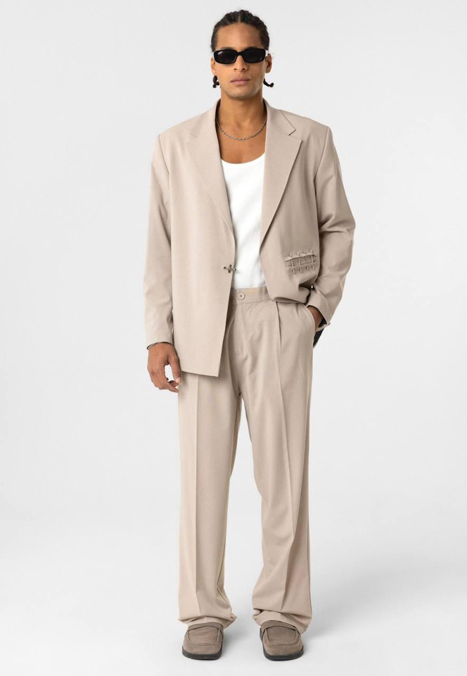 Коричневый мужской костюм в стиле оверсайз – это идеальное сочетание комфорта и модного дизайна. Яркий акцент костюма – надежный металлический замок. Преобразите свой образ, добавив нотку уверенности и стиля! Внесите в ваш гардероб трендовый элемент, который подчеркнет индивидуальность и станет вашим лучшим помощником в создании незабываемого лука.