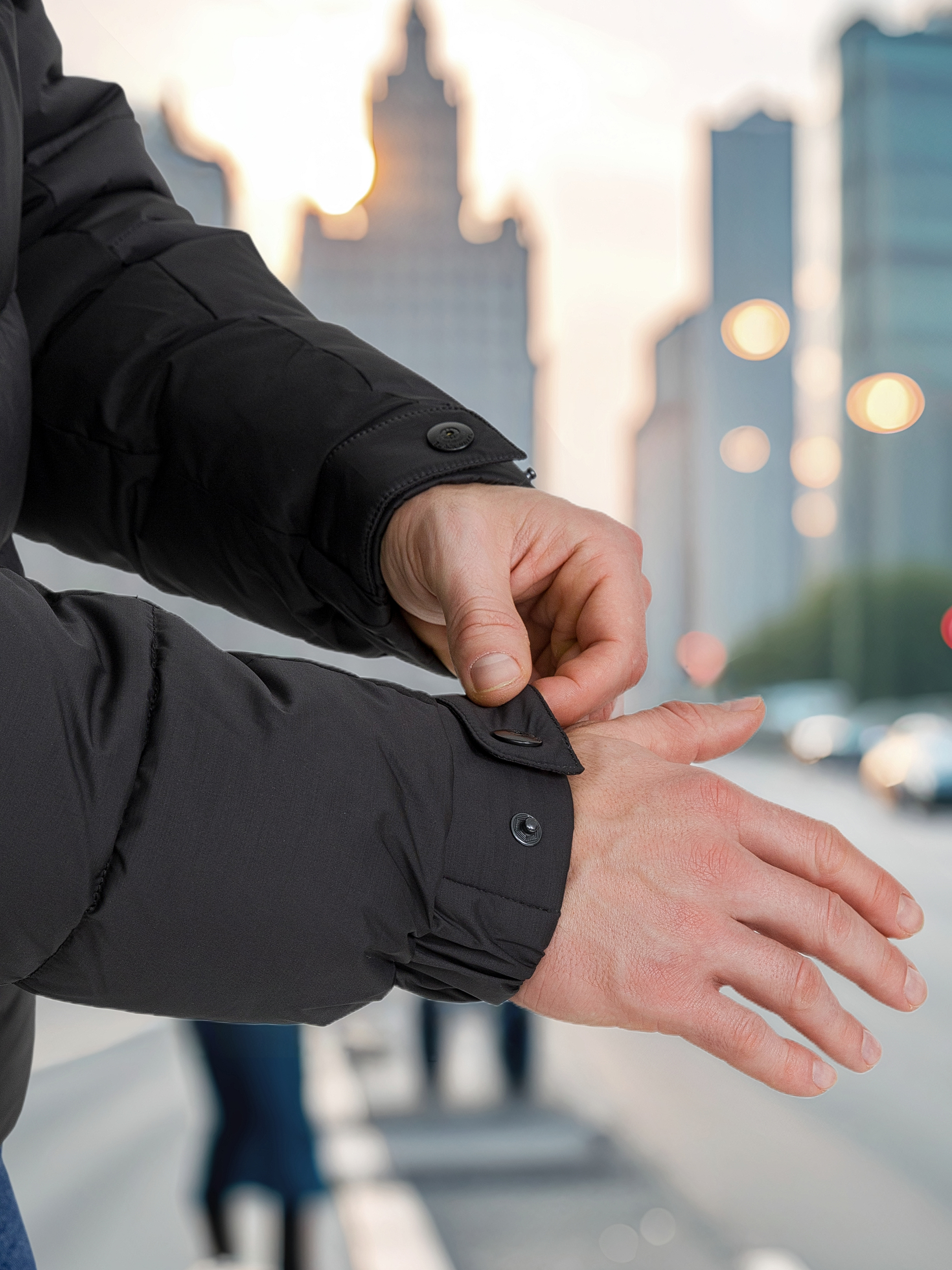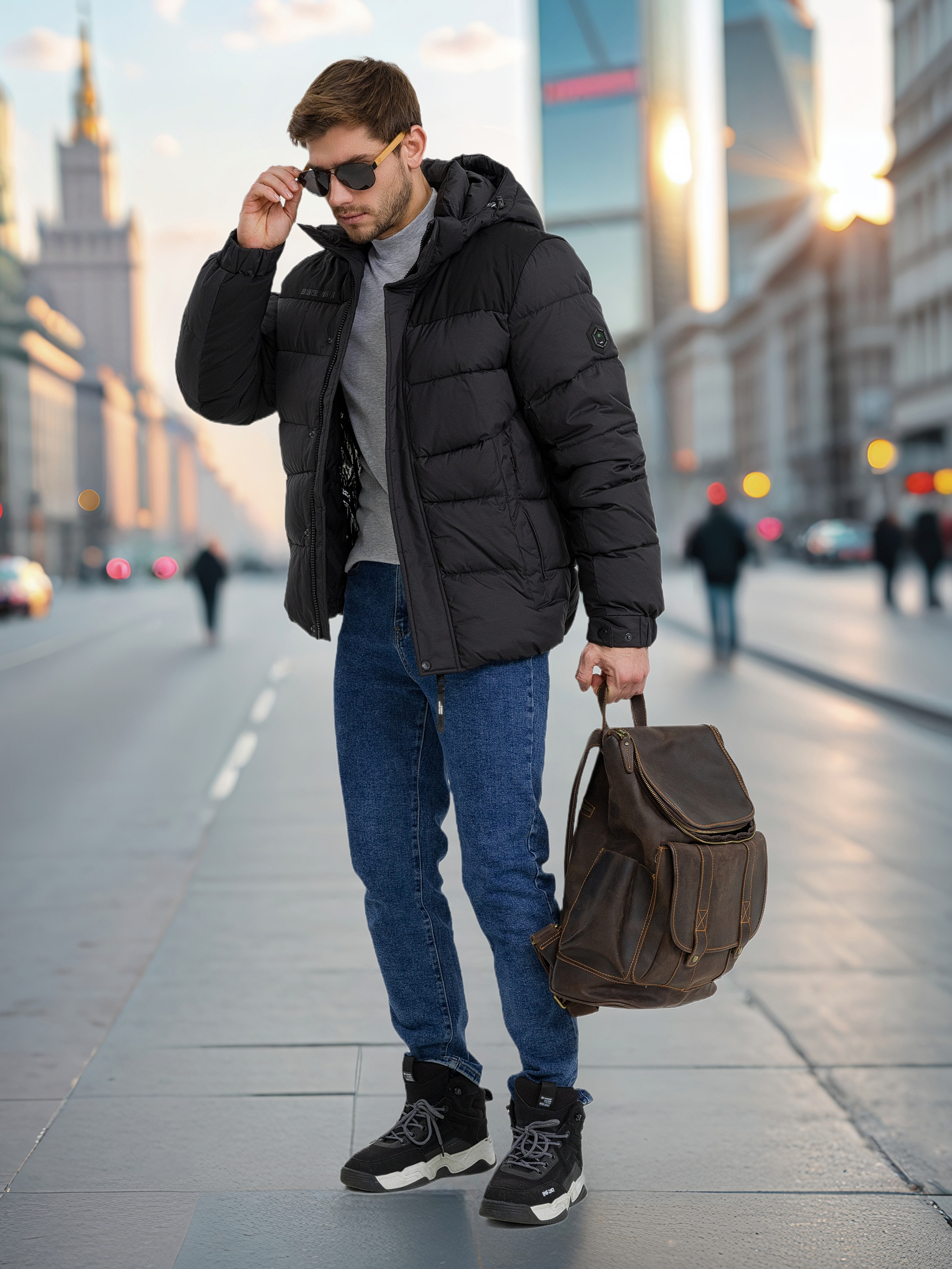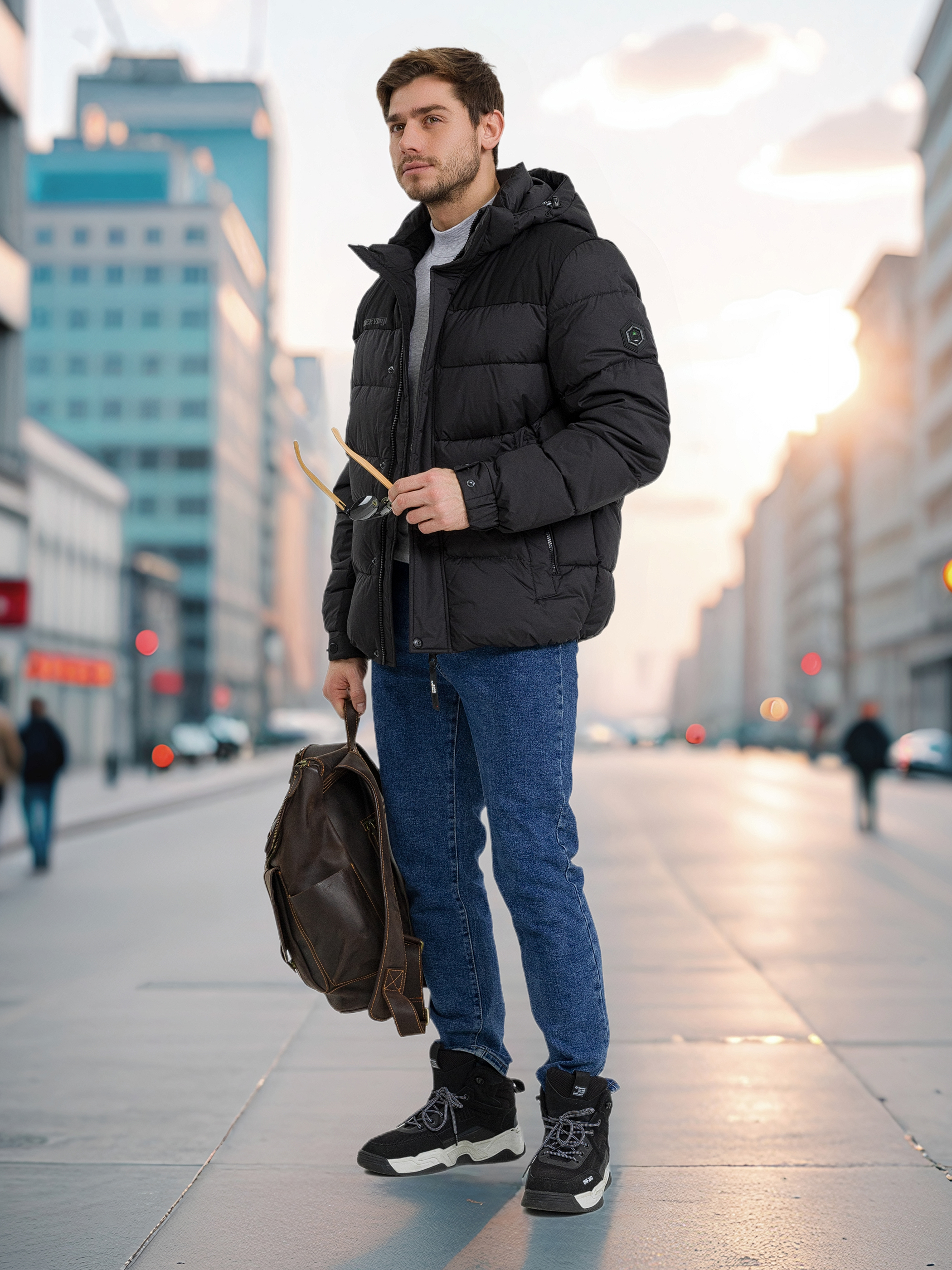 Черная мужская зимняя куртка (артикул C23-2257) — стильный выбор настоящего зимнего сезона! Изящно сочетает комбинаторную ткань и стеганную форму. Нижняя часть снабжена невидимой резинкой, подчеркивающей фигуру. Продукт премиум-бренда Black Vinyl станет вашим верным спутником холодными днями, сочетая элегантность дизайна и комфорт ношения.