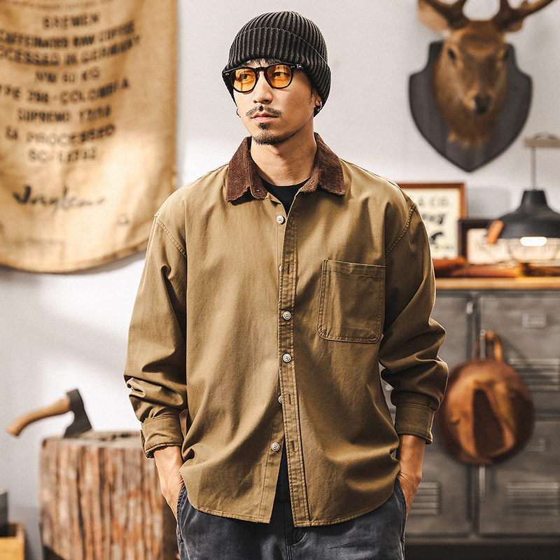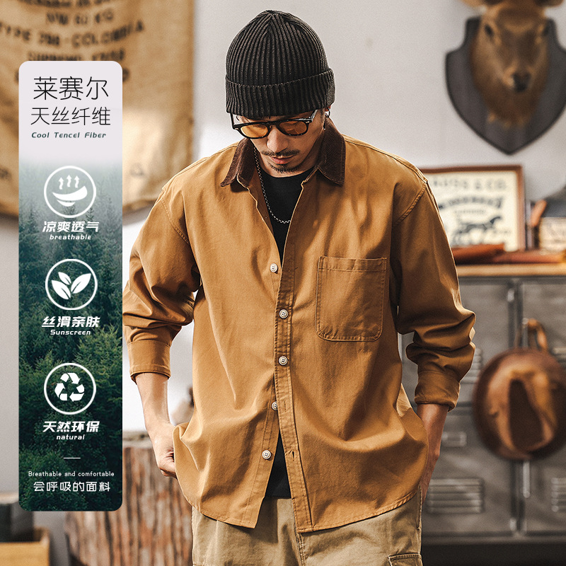 Мужская рубашка из хлопка с оригинальным сочетанием: отстроченный накладной карман и контрастный воротник из премиальной ткани Lyocell (Tencel).