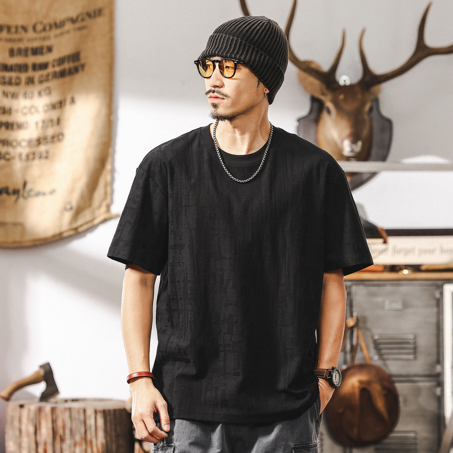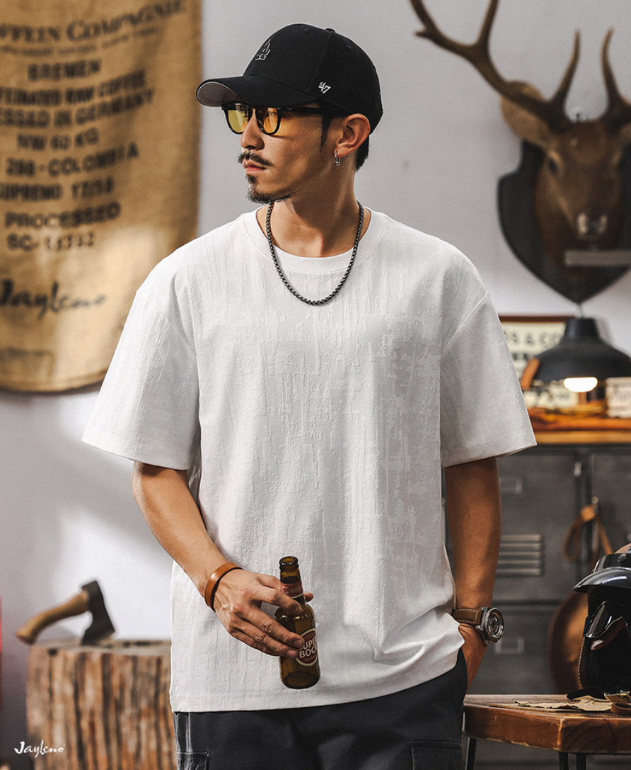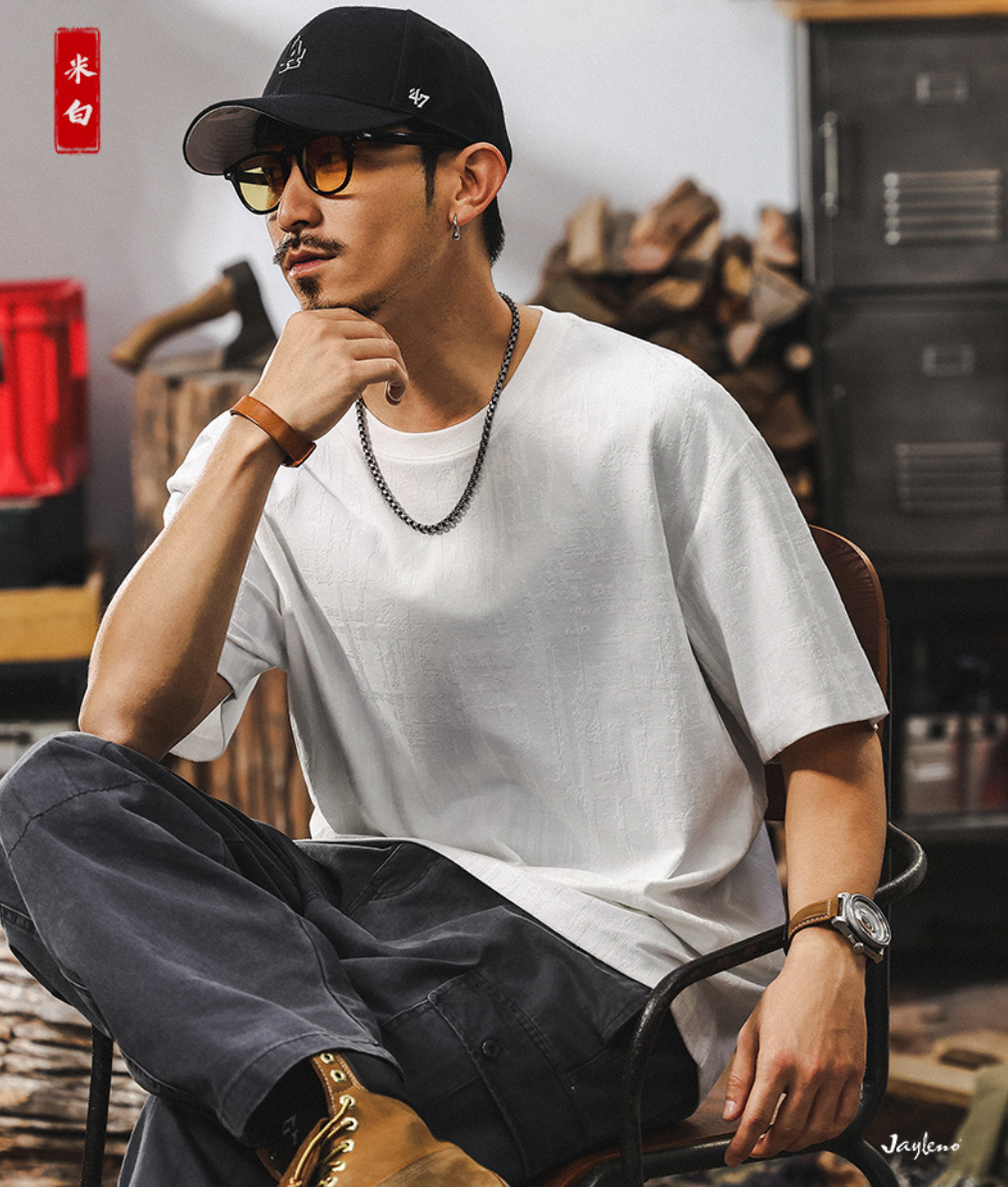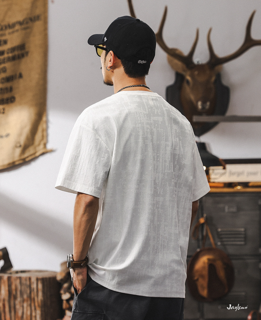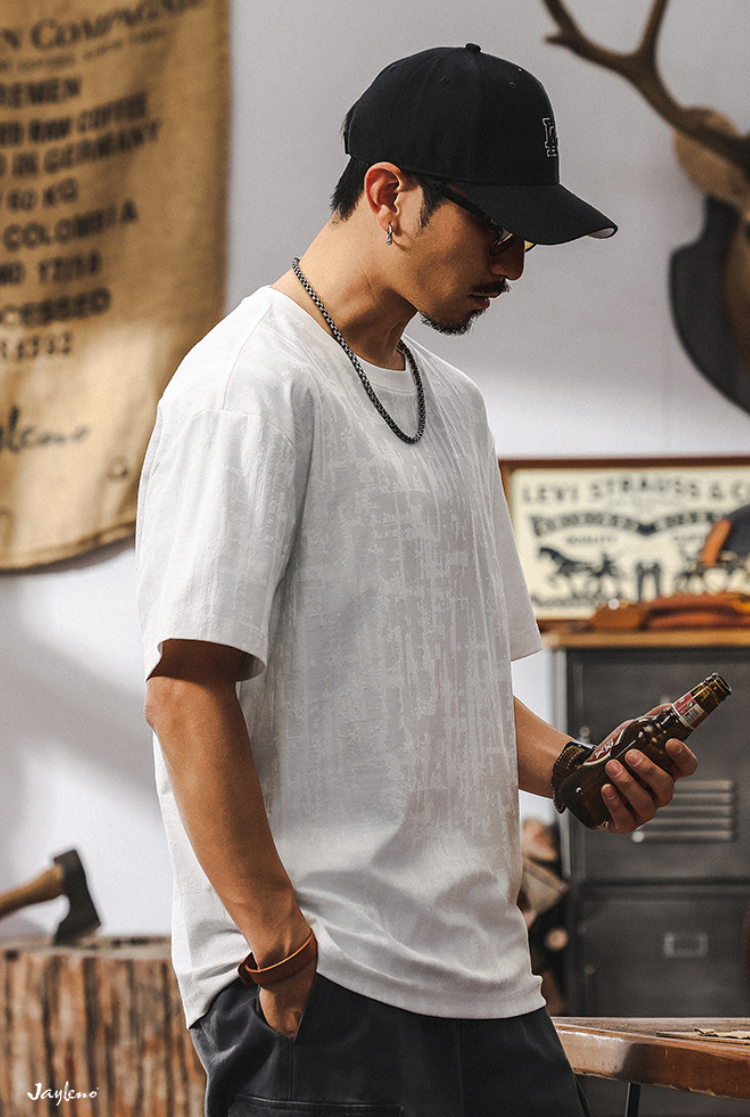 Открой для себя новую коллекцию лета 2026 — стильную мужскую футболку из качественного жаккарда в уникальном американского-ретро стиле! Идеальный выбор для тех, кто ценит комфорт и современную моду. Подчеркни индивидуальность повседневной одеждой высшего класса.