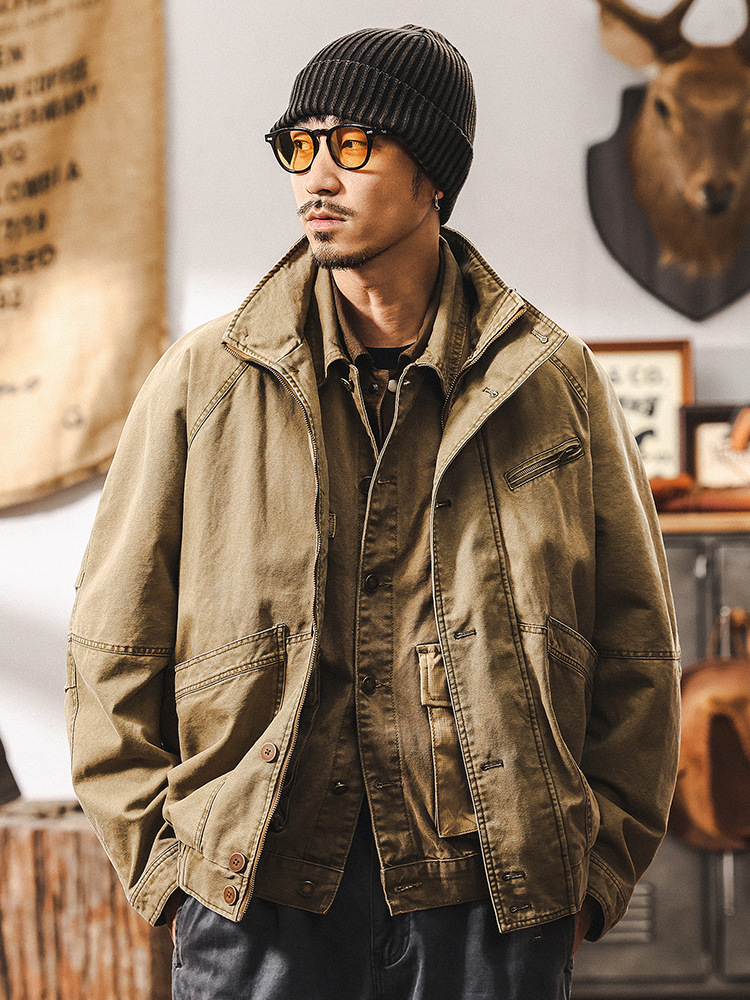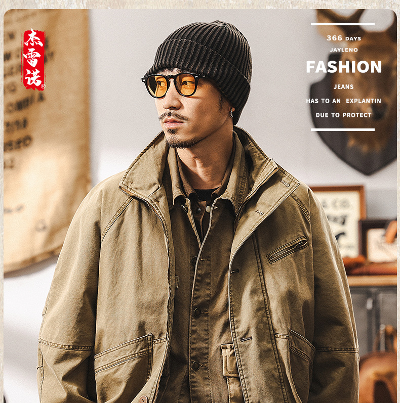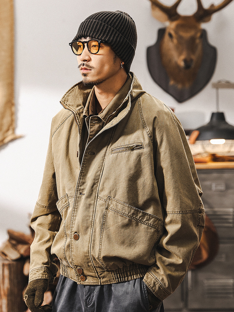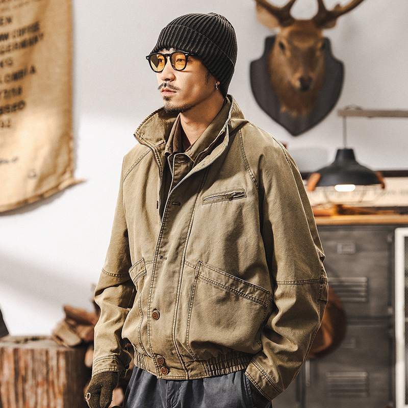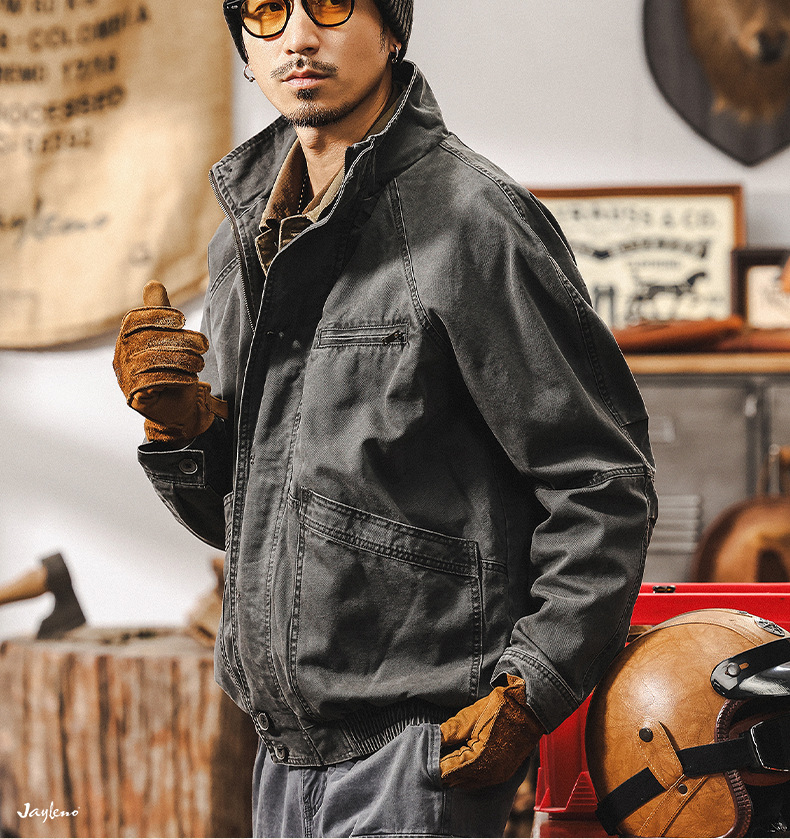 Мужская куртка из натурального хлопка с эластичной резинкой по нижнему краю — стильный выбор в Detroit-стиле! Элегантная стойка-воротник защищает шею, а удобная комбинация замков-молний и кнопок позволяет свободно регулировать температуру вашего комфорта. Отличное сочетание практичности и моды для городских улиц!