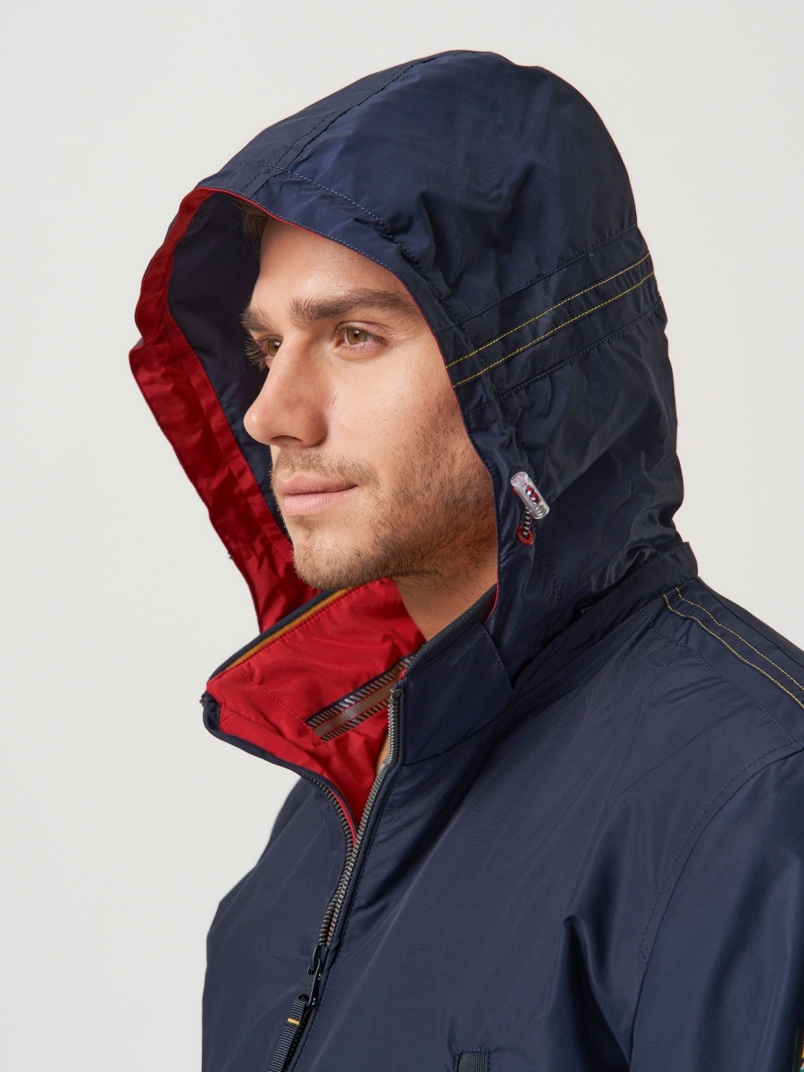 Спортивная мужская ветровка с капюшоном тёмно-синего цвета — стильный выбор! Активного образа жизни добавят два ярких варианта серого и желтого цветов с эффектными темно-синими лампасами на плечах и капюшоне. Внутренняя подкладка обеспечивает комфортное терморегуляцию. Регулируемый капюшон, резинка по краю горловины, рукавов и низа. Для удобства нагрудный карман и прорезной нижний на молнии. Декоративная нашивка на рукаве завершит образ. Модель на фото размера M (50), рост 182 см.