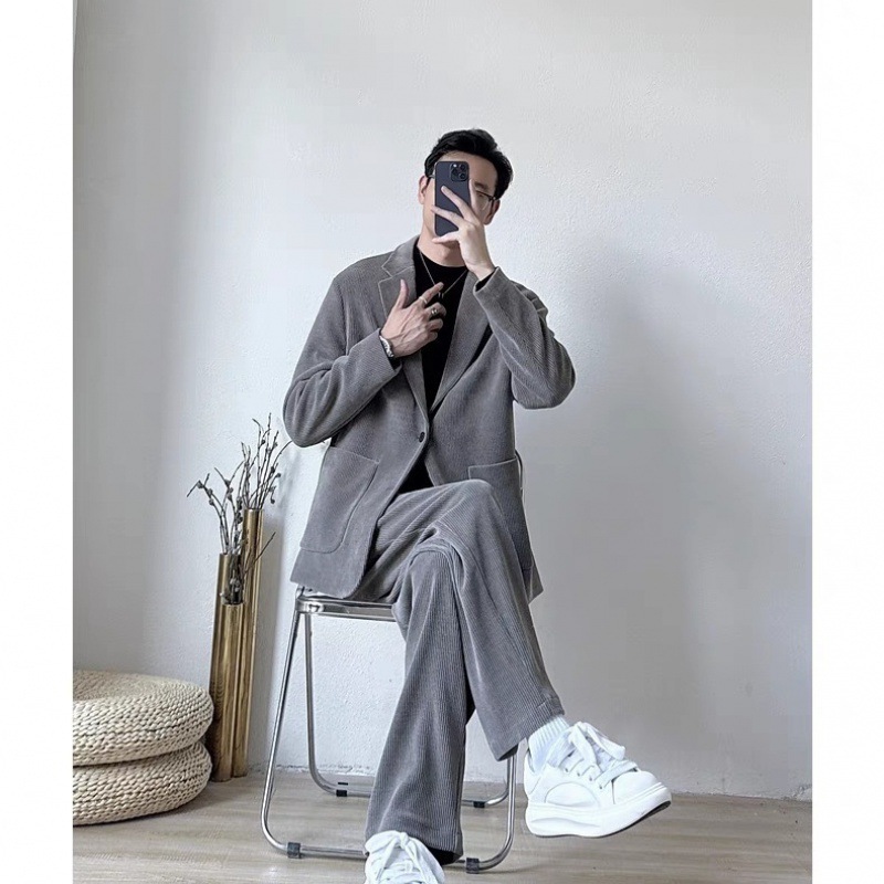 Ткань костюма вельветовая стрейчевая. Полный комфорт в носке.Костюм однобортный без ворота от UNBENDING - это стильное решение для особых случаев. Модель выполнена из комфортной blend ткани с добавлением лайкры, вискозы и хлопка, что обеспечивает приятное ощущение на коже и свободу движений. Широкие брюки с высокой посадкой и однобортный пиджак без ворота создают эффектный и современный образ. Костюм подойдет для выпускного, свадьбы или любого другого торжественного мероприятия, где вы хотите выглядеть безупречно.